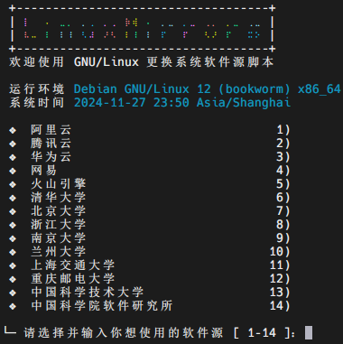 1 | bash <(curl -sSL https://linuxmirrors.cn/main.sh) |